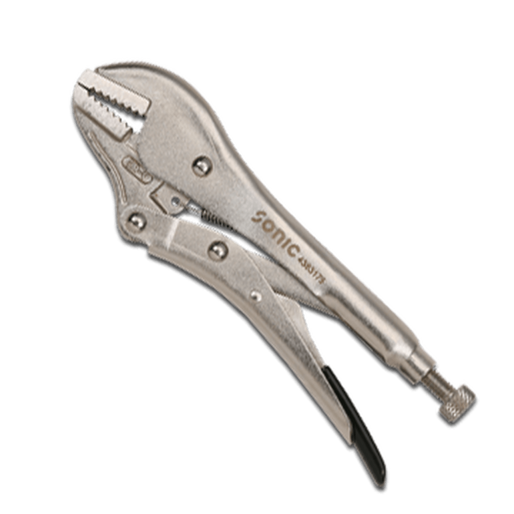 are pliers that can be locked into position, using an over center action. One side of the handle includes a bolt that is used to adjust the spacing of the jaws, the other side of the handle (especially in larger models) often includes a lever to push the two sides of the handles apart to unlock the pliers.
